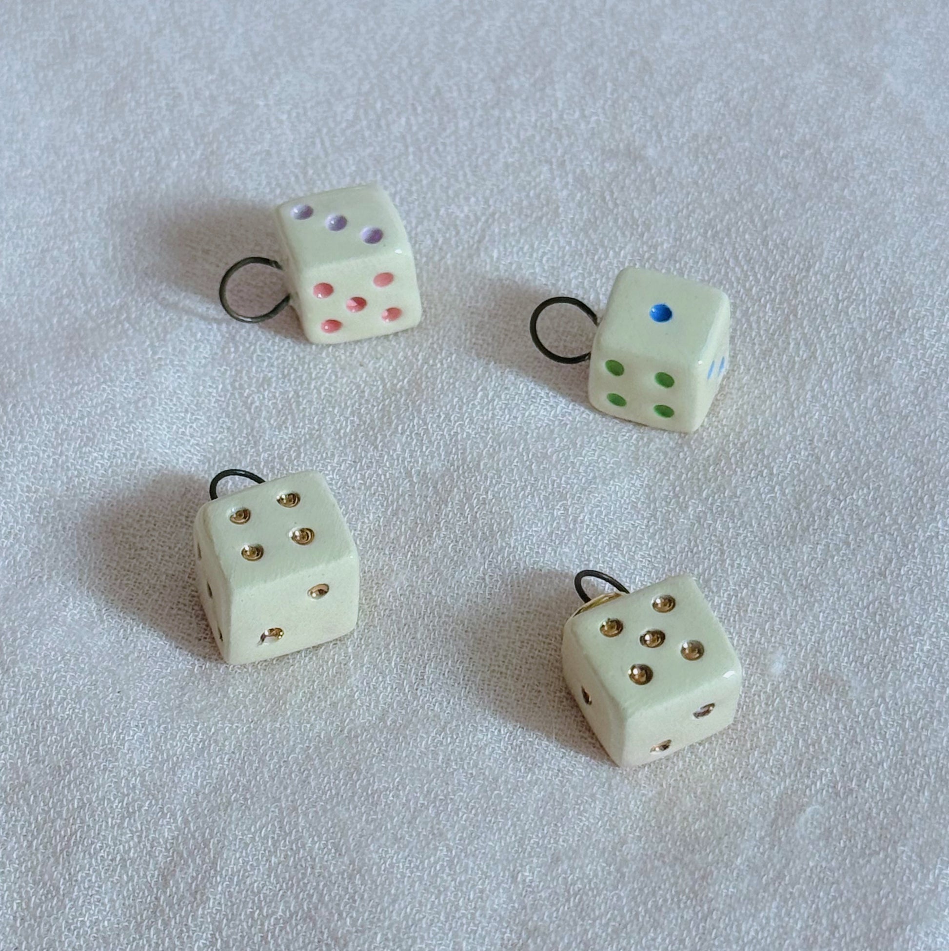 Mini dice ceramic charms in pastel colors or with gold accents! These are perfect for charm necklaces, charm bracelets, or anklets. Each charm is handmade and hand-painted from porcelain and pastel glazes to create a unique and adorable keepsake! Please allow for up to 3 weeks for these to be shipped out as each is individually made to order🩷 *COLORS MAY VARY SLIGHTLY BY NUMBER*